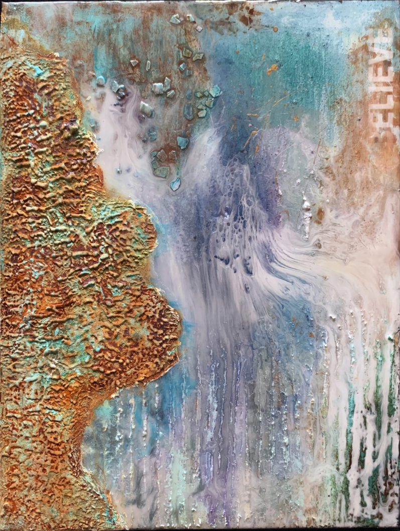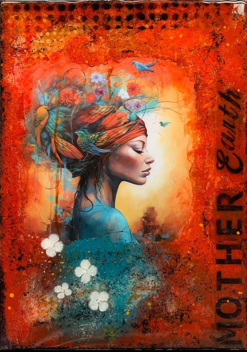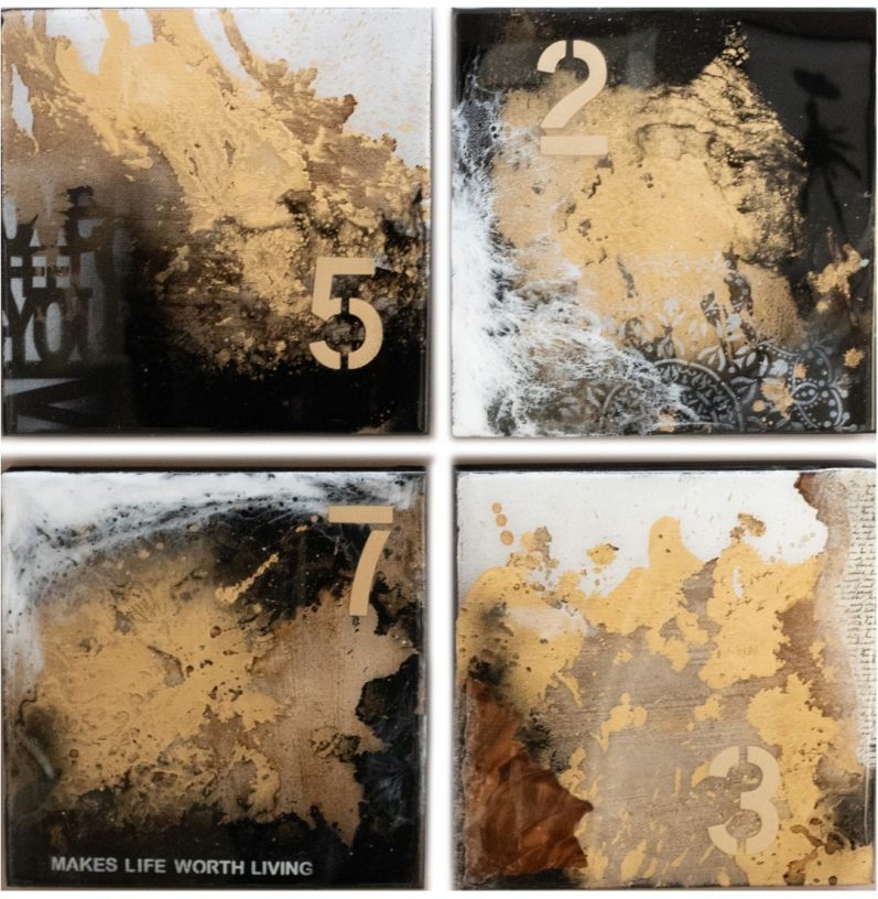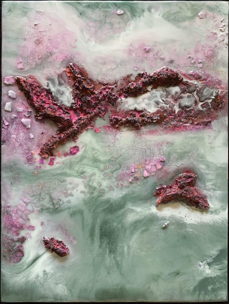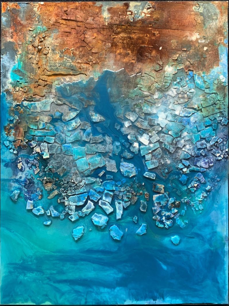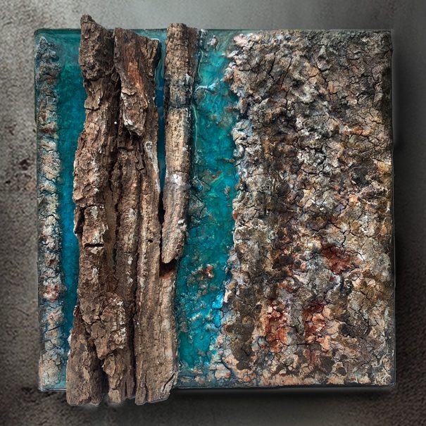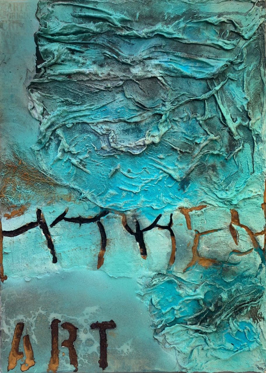 Resin (Epoxidharz) ist ein flüssiges Kunstharz, das sich schützend und verbindend über Farben und Materialien legt. In meinen Arbeiten verstärkt es Tiefe, Struktur und Ausdruck, ohne die ursprüngliche Wirkung zu überdecken.